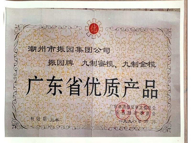 潮州市振園果脯有限公司前身系潮州市振園果子廠(chǎng)有限公司,是潮汕涼果王之一,創(chuàng)建于1926年,早在40年僅以老香黃,老藥桔,黃皮鼓而聞名遐邇,經(jīng)四代人的專(zhuān)注和發(fā)展,承上啟下,本公司九制系列產(chǎn)品由市級(jí)制作技藝傳承人蔡衛(wèi)武設(shè)計(jì)、研制、秉承傳統(tǒng)制作技藝,嚴(yán)謹(jǐn)選取原材料,系用現(xiàn)代技術(shù)和傳統(tǒng)技藝結(jié)合,經(jīng)反復(fù)腌、漂、曬、加料等九道工藝程序精制而成,制法獨(dú)具風(fēng)格,味道獨(dú)一無(wú)二。加之現(xiàn)代之包裝,使產(chǎn)品發(fā)出無(wú)法抗拒之魅力。實(shí)為居家旅行、宴會(huì)、派對(duì)之理想保健食品。